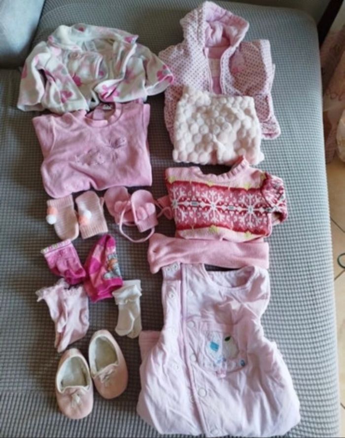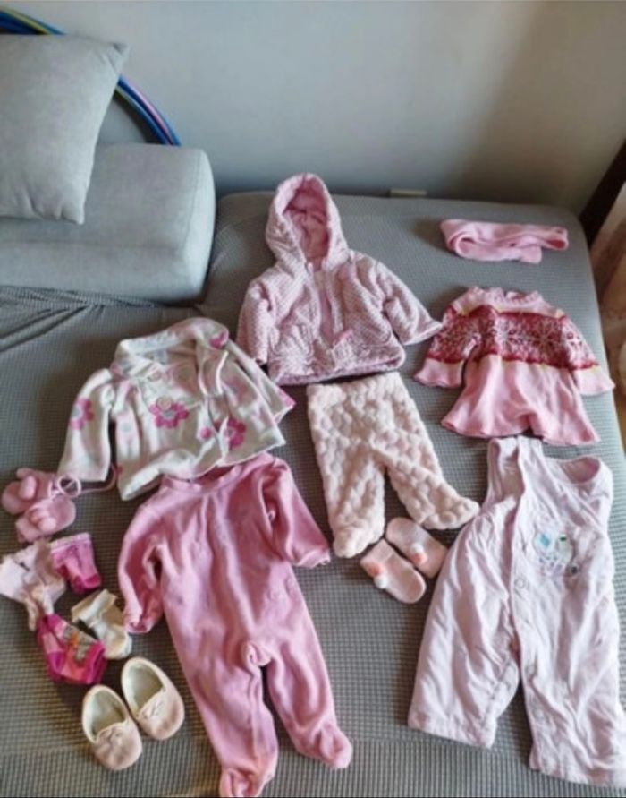 Je vends ce lot de vêtements d'hiver pour bébé fille 1 à 3 mois.