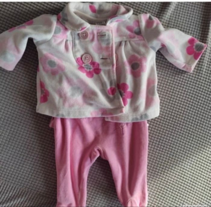 1 ensemble 3 mois : veste velours doux motif fleur 3 mois + pyjama velours absorba très bon état