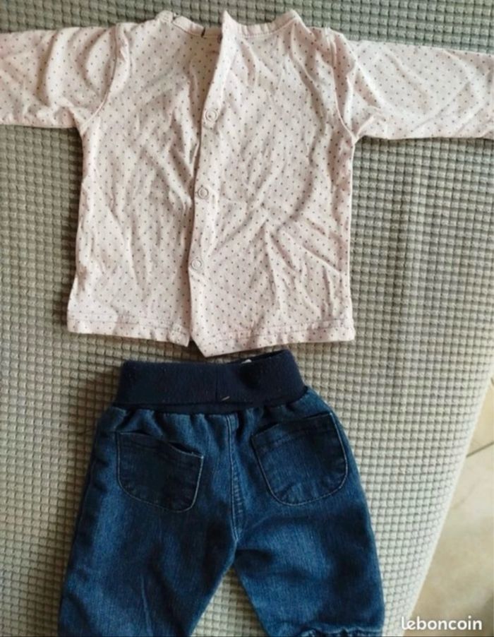 ✨Naissance :,1 jean doublé chaud bon état +polo rose boutonnage arrière