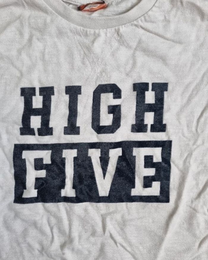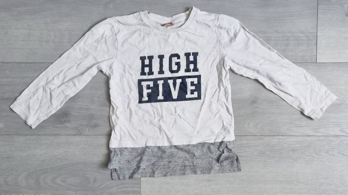 #superposition #effet2en1 #effetdeuxenun #doublecouche #casual #sportswear #sport #colleger #americain #universite #urbain #imprime #graphique #highfive #high #five #message #slogan #texte #blanc #blancetgris #gris #chine #ecru #marine #bleumarine #couleuruni #bicolore #6ans #tailleunique #enfant #garcon #fille #unisexe #junior #adulte #homme #femme #confortable #mode #vintage #tendance #secondemain #occasion