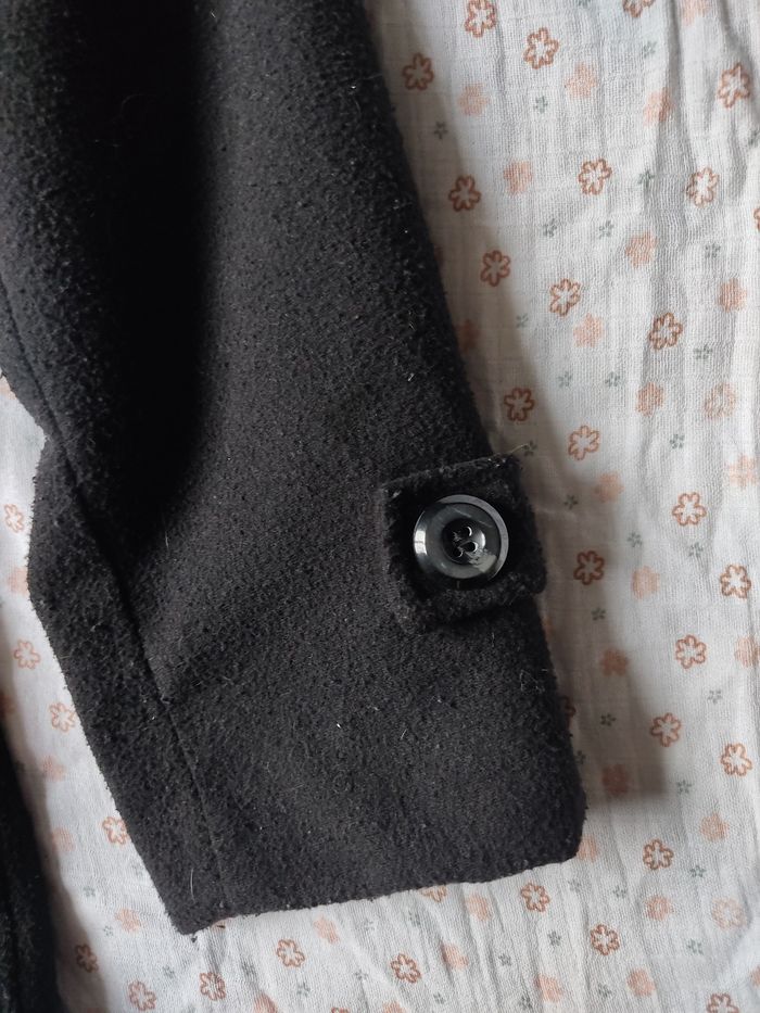 Manteau noir type caban 🖤, en matière chaude et douce, idéal pour les journées fraîches.