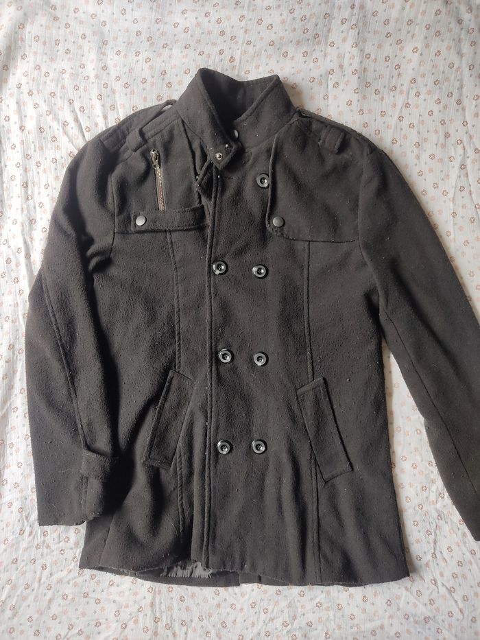 manteau homme, caban noir, manteau chaud, manteau doublé, manteau élégant, manteau hiver, veste noire, manteau XL, caban homme, manteau classique, manteau à boutons, manteau avec poches, manteau polaire