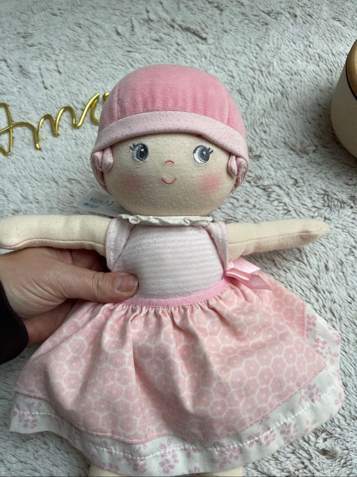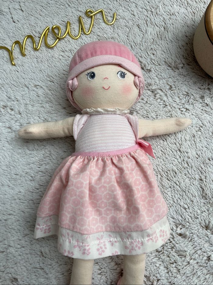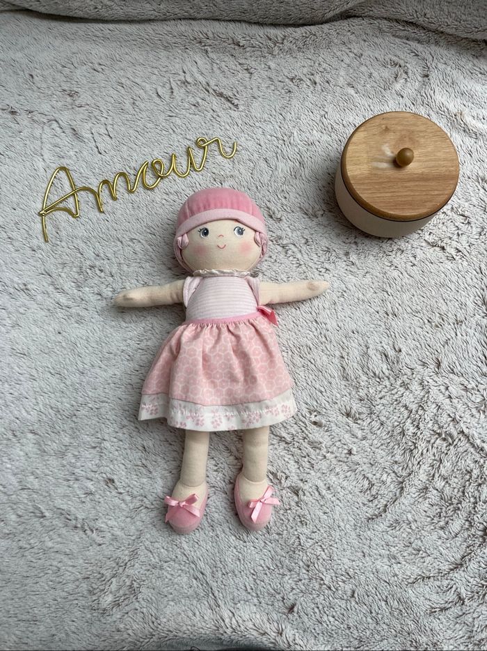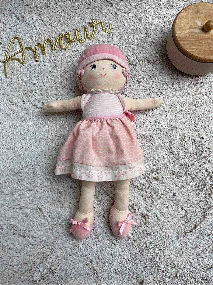 Poupe de chiffon dans les tons rose et blanc Très état 35cm Idéal pour une première poupée Corolle