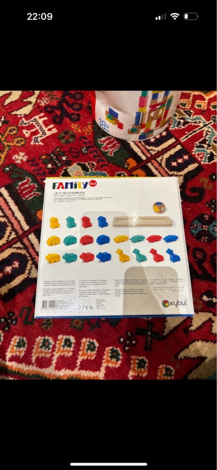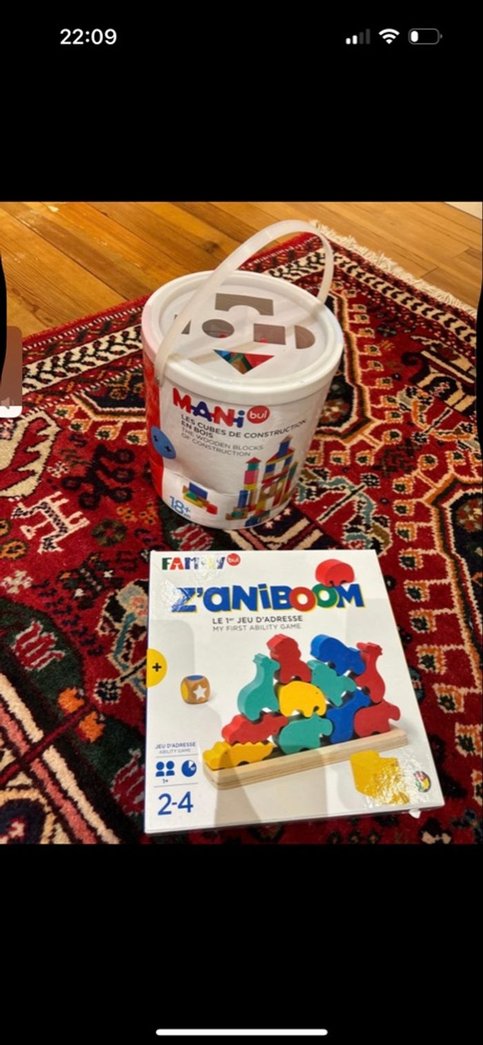 Les cubes sont à partir de 18 mois et le jeu d’adresse à partir de 2 ans.