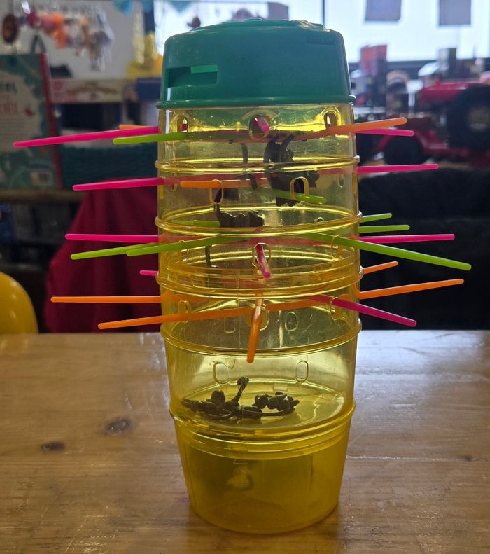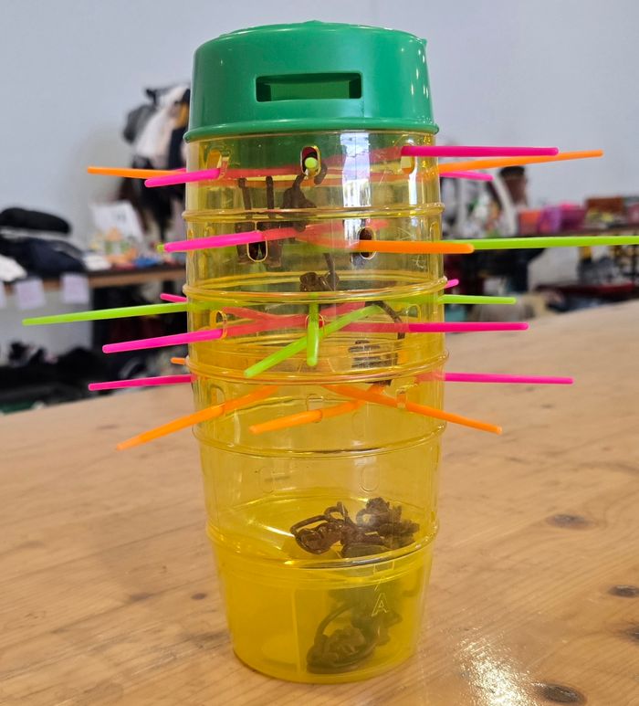 Principe du jeu : Retirez délicatement les bâtonnets de la tour sans faire tomber les singes. Le joueur qui a fait tomber le moins de singe remporte la partie !