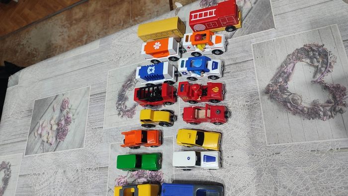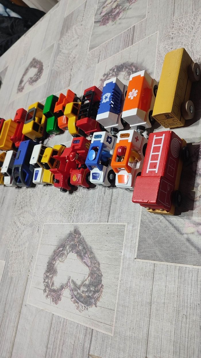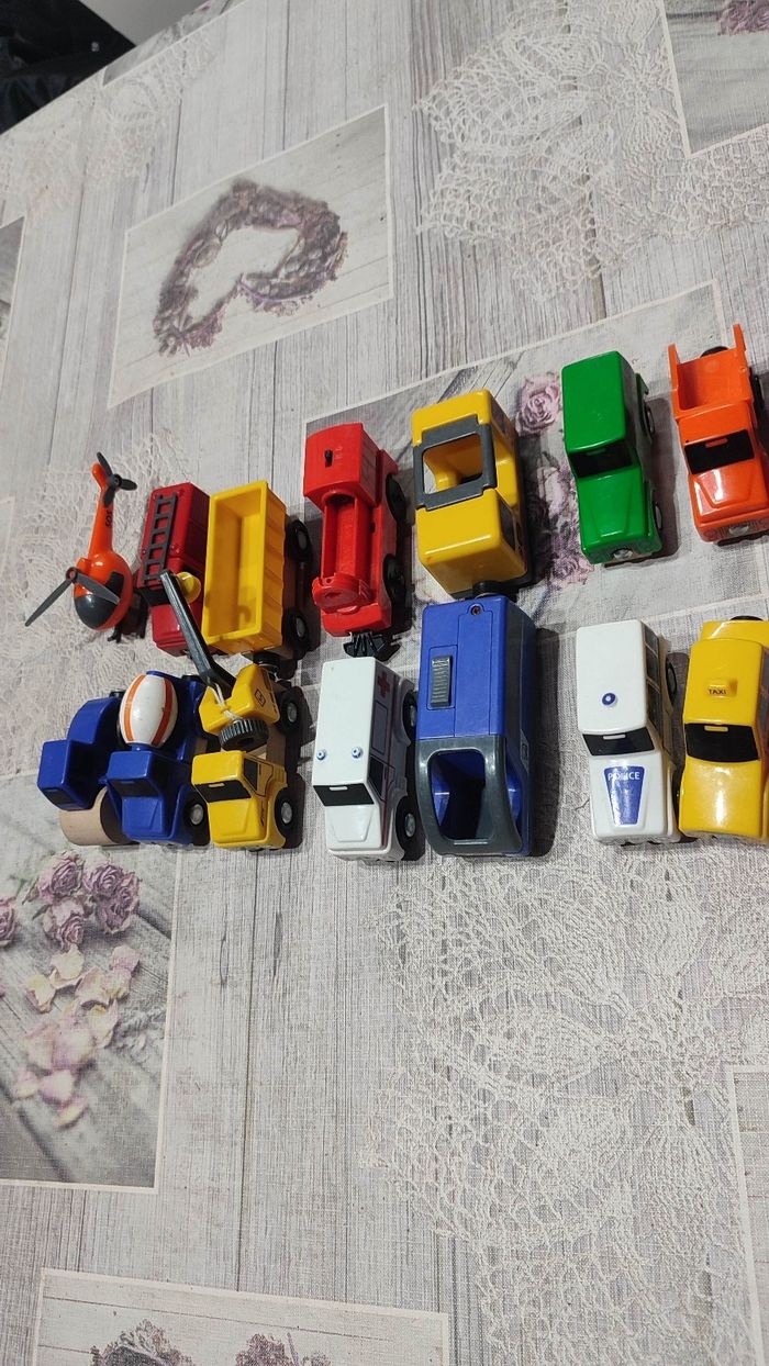 Lot train, véhicules pour circuits bois. J ai également plusieurs annonces de circuits en bois. Les voitures étaient par 2 ou par thèmes pompiers avec remorque, police avec remorque. Il y a également 3 personnages. Bon état. Prix 20€. Il y en a pour 50€ à 60€.