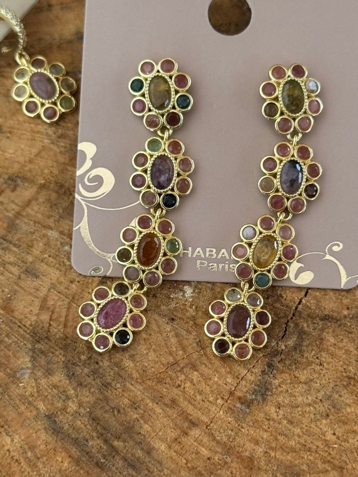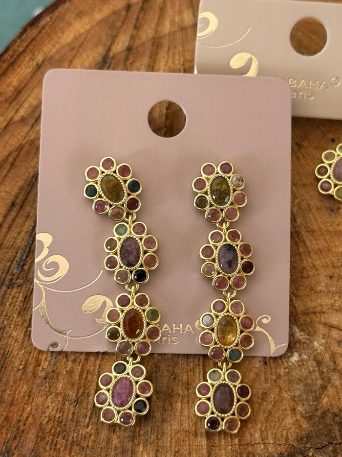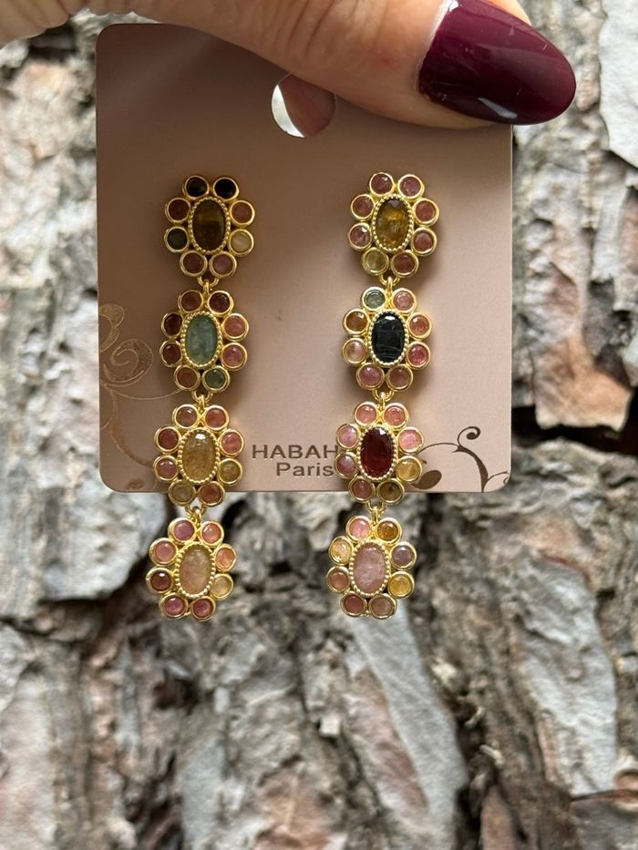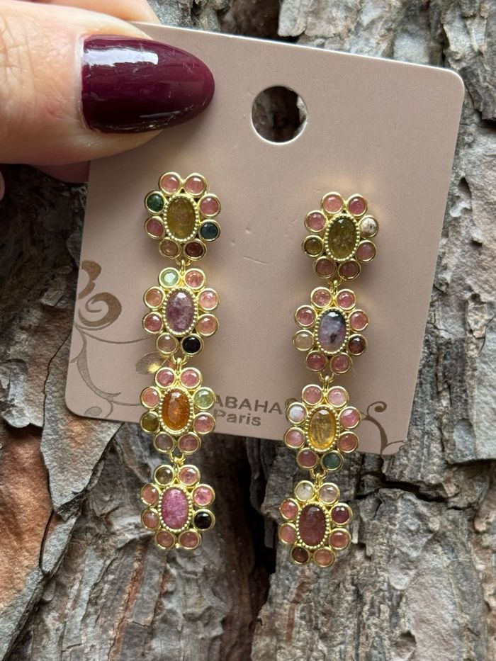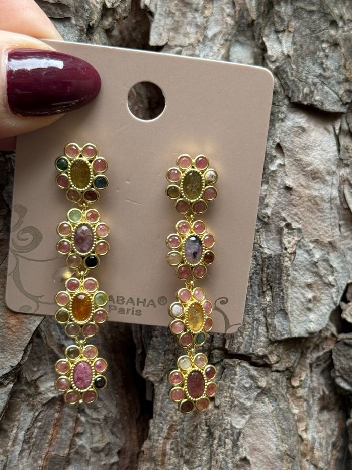 Longues boucles d’oreilles fleurs acier inoxydable or pierres naturelles acier inoxydable or