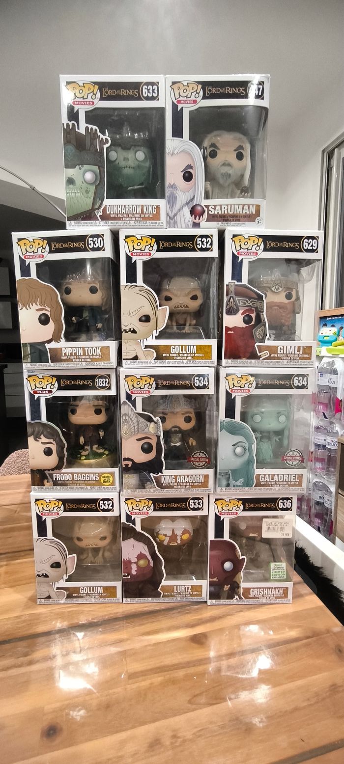 Beaucoup d'autres licences également. Envoie en colis blindé très rapidement. Ils sont au prix du marché actuel sur les plateformes de vente d'occasion. Je peux vous faire une annonce avec les photos des 6 faces. Funko pop lords of the rings le seigneur des anneaux 636 grishnakh 533 lurtz 532 Gollum 634 galadriel 534 king Aragorn 1832 frodo baggins 629 gimli 530 pippin took 447 saruman 633 dunharrow king