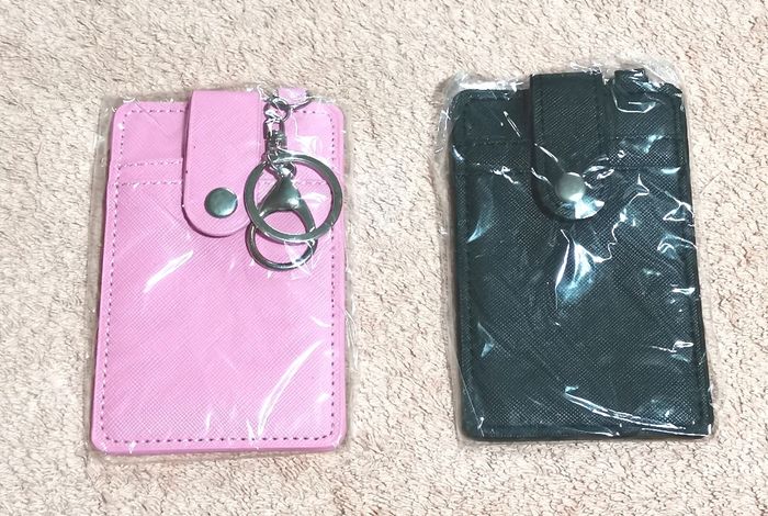 Porte badges ou porte cartes, effet cuir rose ou noir, support chaînette porte clés, neufs, au choix 7 euros chacun, prix définitif, merci de confirmer votre choix à la commande.