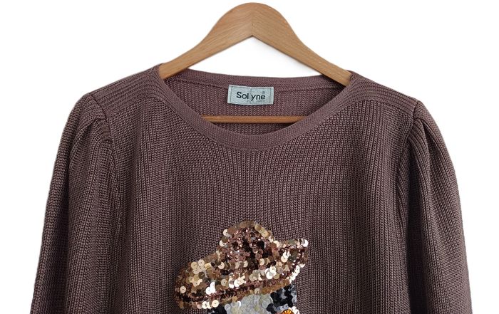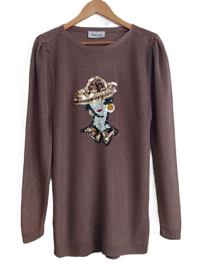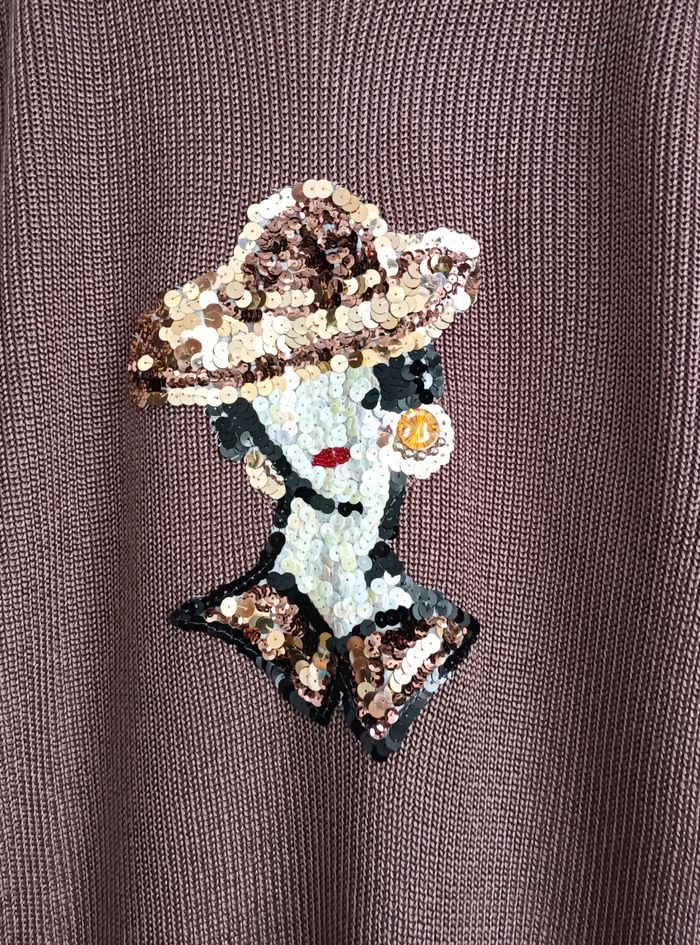 DECOR TETE DE FEMME EN PERLES ET SEQUINS COUSUS MAINS.