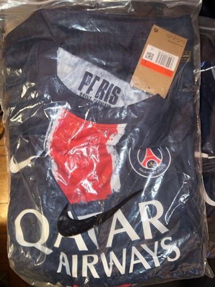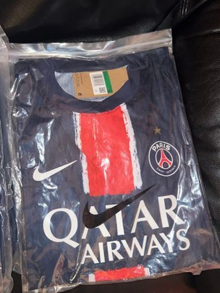 Ce qui me reste en maillot de foot PSG étoile Il me reste 1L,1xL,3M,4S Ce n’est pas des contrefaçons Ils viennent de Thaïlande, où sont fabriquées les maillots