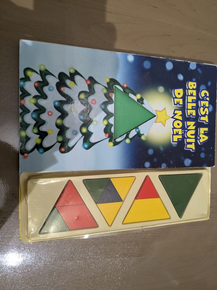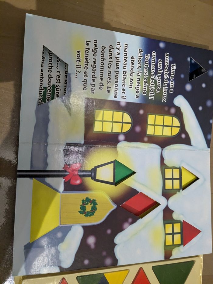 Livre c'est la belle nuit de Noël En carton épais et des pièces en bois à placer sur les pages aux endroits avec les formes correspondantes État satisfaisant, quelques traces d'usure, et le plastique qui recouvre les pièces en bois est un peu jauni et abîmé A retirer à Aigrefeuille sur Maine Envoi possible à votre charge