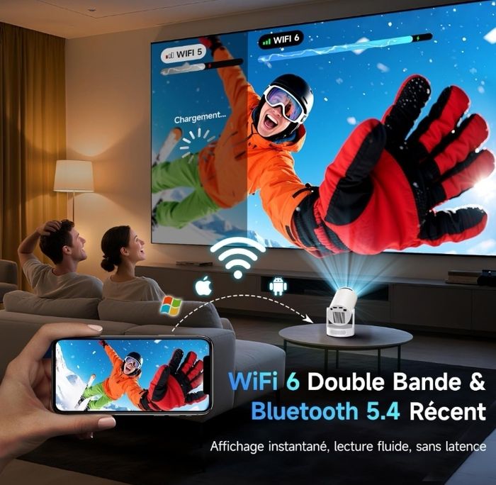 Connexion sans fil rapide aux appareils iOS, Android et Windows.