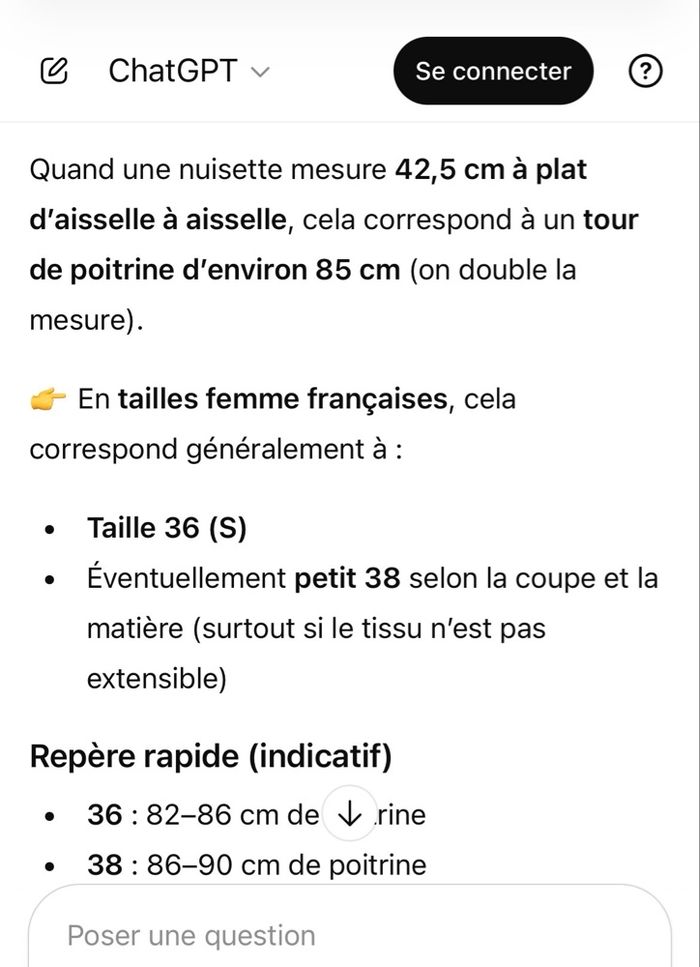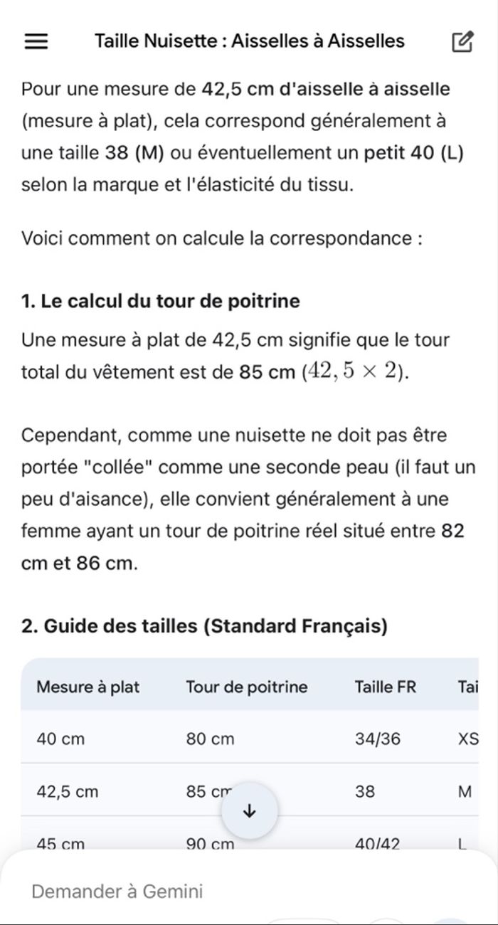 Mesure d’aisselles à aisselles:42,5cm=85cm de tour de poitrine.