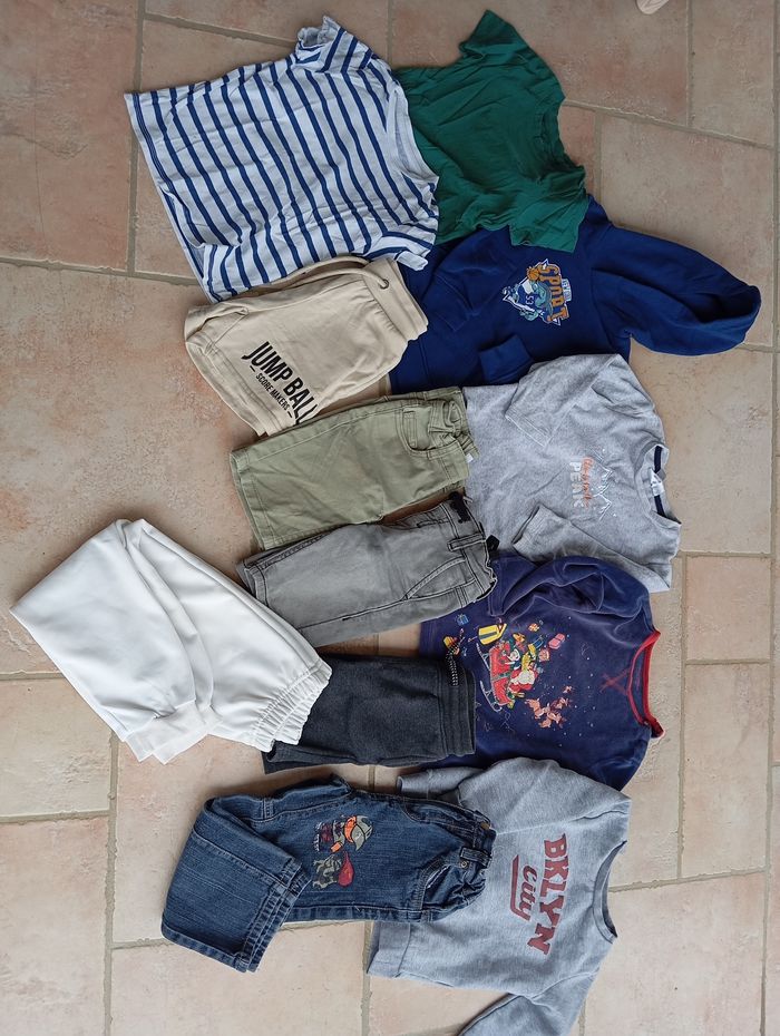 2 tee shirt 2 pulls 2 haut de pyjama 4 shorts 1 jean 1 survêtement
