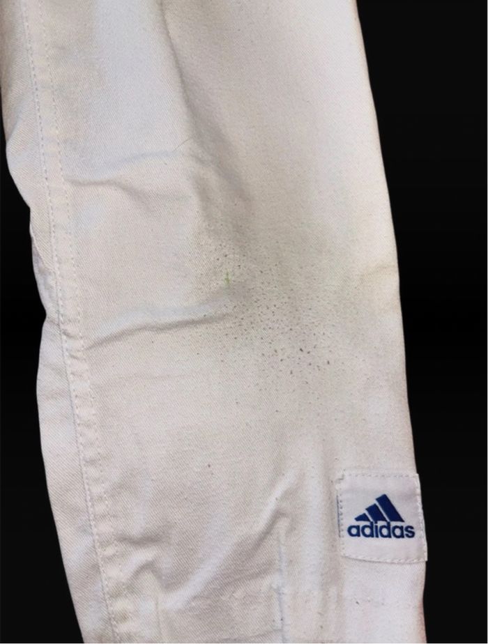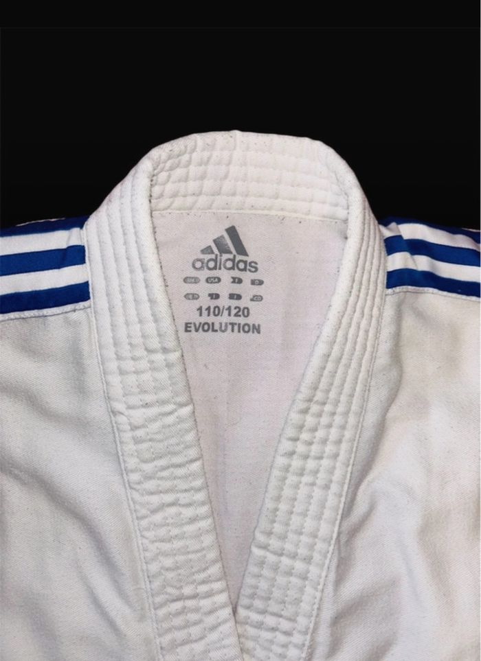 Kimono bon état taille 110/120 Au niveau genou voir photo Lanière retiré sur un côté mais possible de la remettre voir photo Élastique taille aucun souci Vendu sans ceinture #eaguilillagarconcinqans #eaguilillagarconsixans