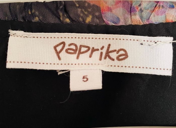 Chemise bouffante de la marque Paprika en taille 5 (48). Porté quelques fois, en bon état. Les manches sont transparentes le restant concernant le buste est doublé. 100% polyester.