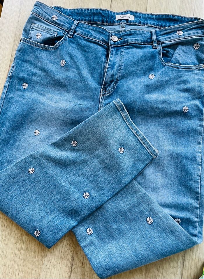 Jeans de la marque Paprika, jamais porté. 2% d’elasthanne, 85% coton et 13% polyester. Taille petit. Taille annoncé 54 mais je dirais plutôt un 48/50. Prix d’achat 70€.