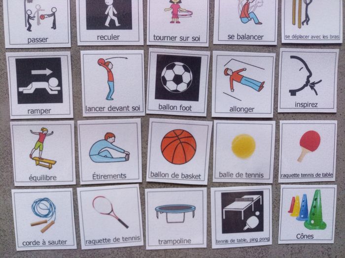 Lot de 30 pictogrammes neufs , découpés plastifiés avec velcro reche au dos ( me préciser si vous voulez du doux ) , sur le thème du sport
