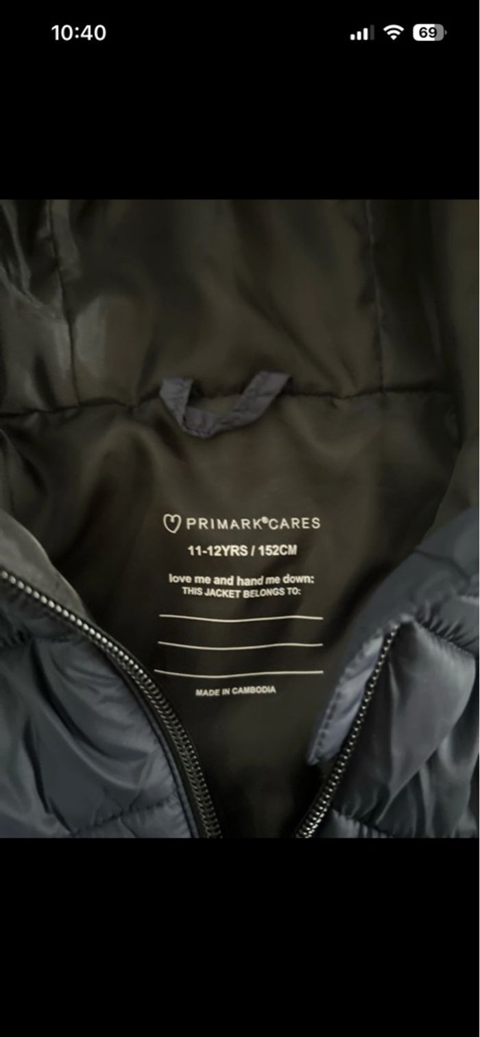 Doudoune à capuche Primark taille 11/12 ans en parfait état