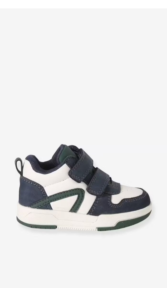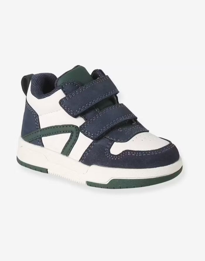 Semelle intérieure cuir amovible, jeu d'empiècements contrastants et look tendance... Tout confort et bien montantes, les baskets s'ajustent idéalement à la morphologie des petits pieds et maintiennent parfaitement les chevilles grâce à leur fermeture scratchée. Parents et bébés vont adorer !