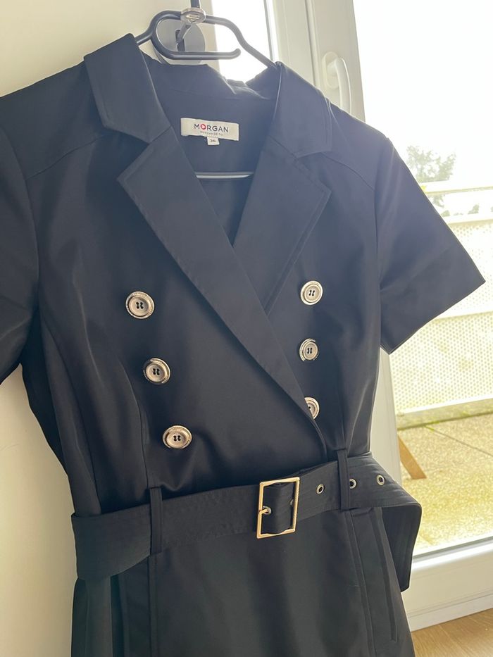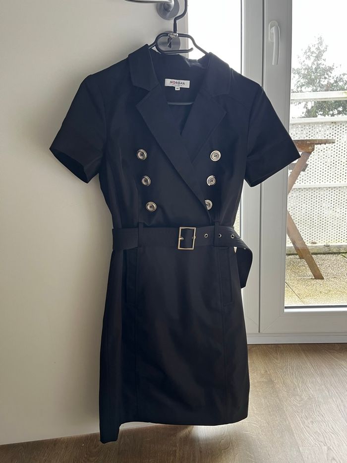 Robe en simili cuir noire Morgan Robe neuve Fermeture latérale Ceinture ajustable Idéale pour les fêtes