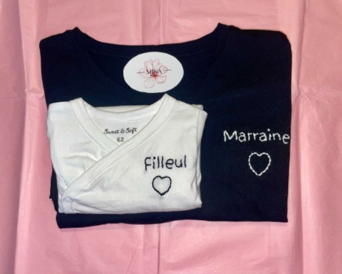 Tee-shirts + body broder à la main Marraine et filleul