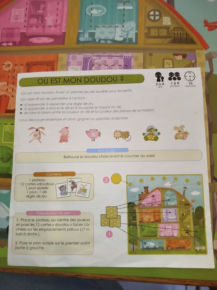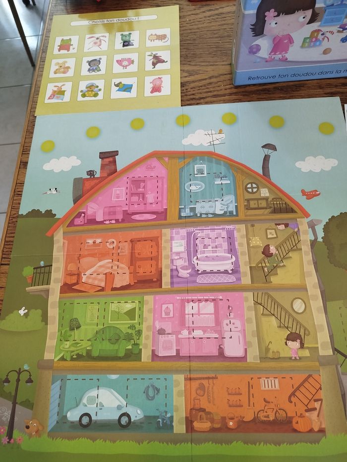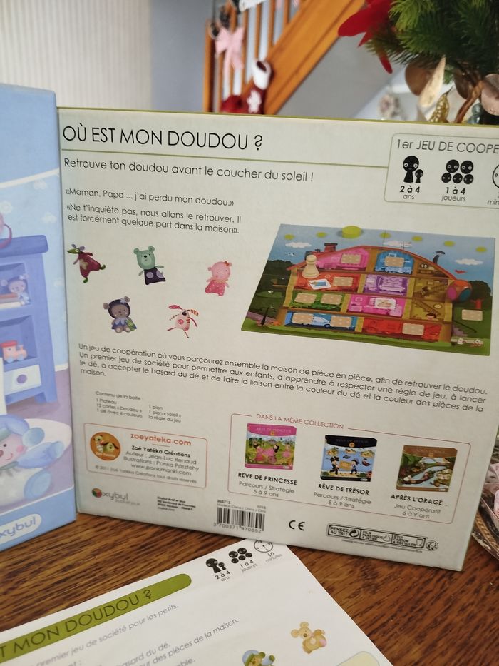 Je vends le jeu “Où est mon doudou ?” de la marque Oxybul, un jeu d’observation et de mémoire parfait pour les tout-petits.