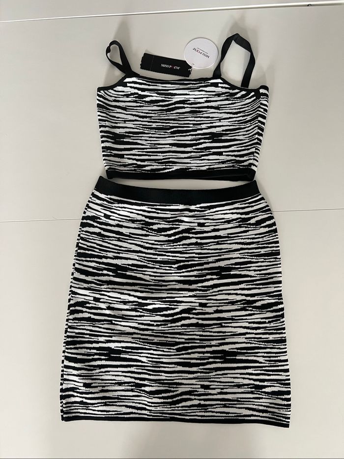 Ensemble zebré zébré jupe mini haut femme M