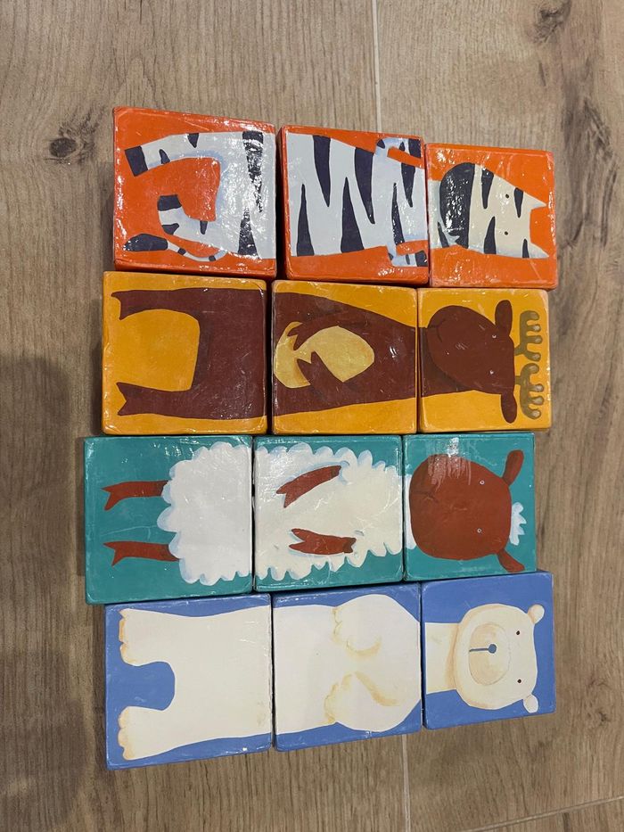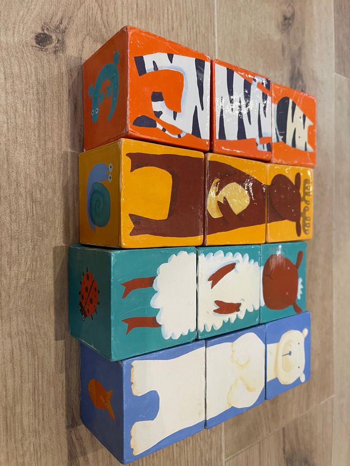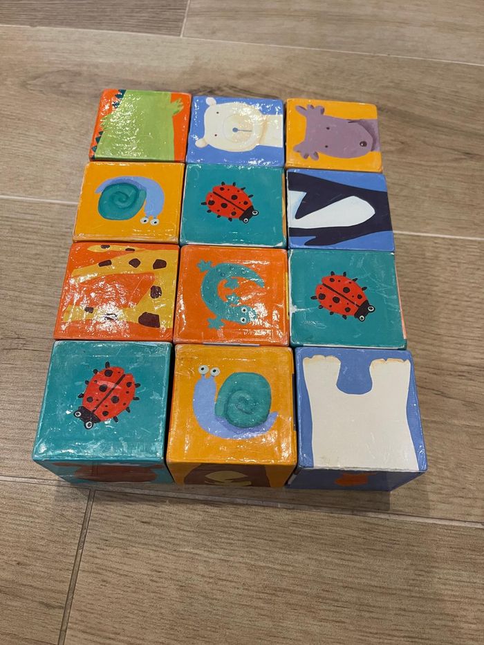 🎄 Lot de 12 cubes d’activités – Motifs animaux – Bon état
