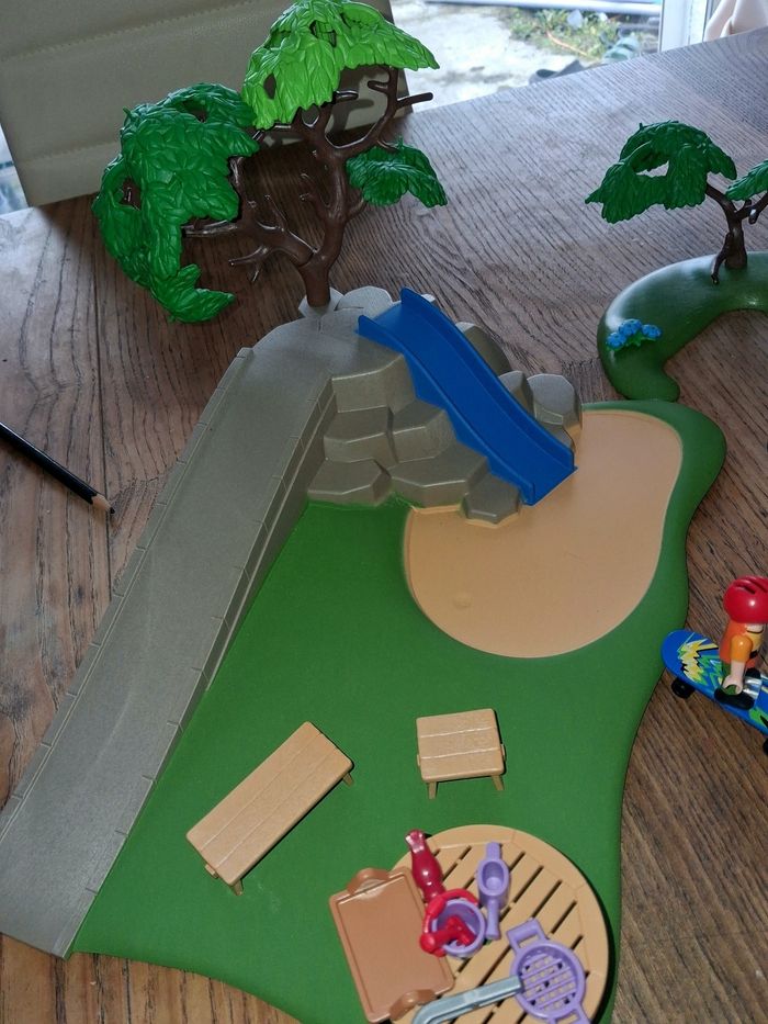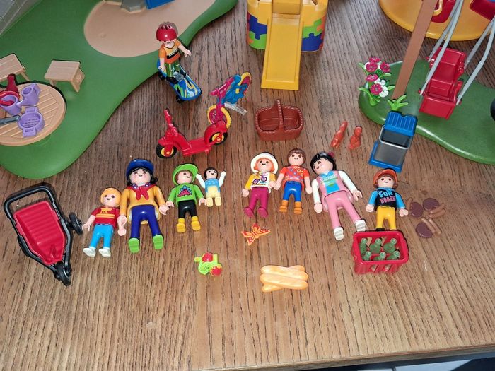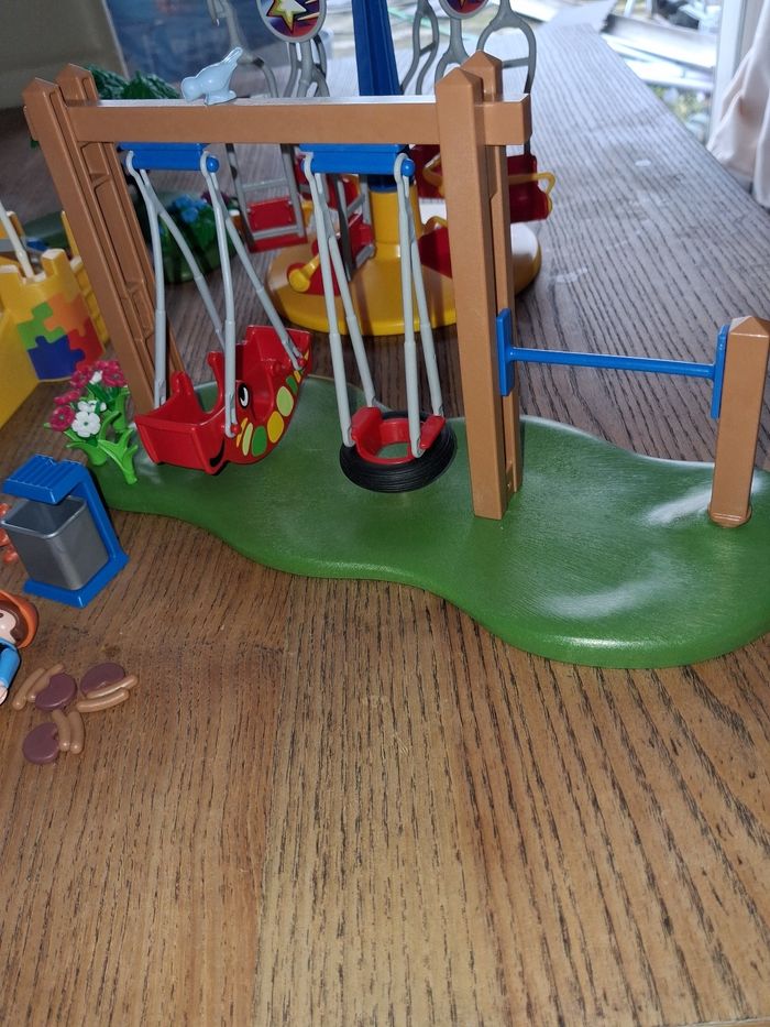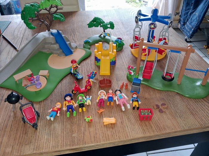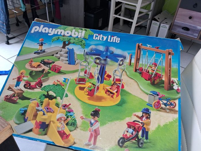 Playmobil city life parc de jeux manque juste le haut de la poussette mais ne gêne en rien boîte abîmé mais tout le reste est complet