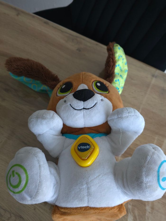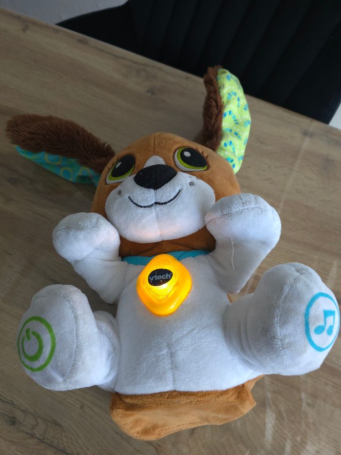 Chien interactif vtech parle,bouge les oreilles, chante,répète ce que l'on dit raconte fonctionne parfaitement #jouetpeluche#chieninteractif#jouetmusical#jouetbebe#chienparlant