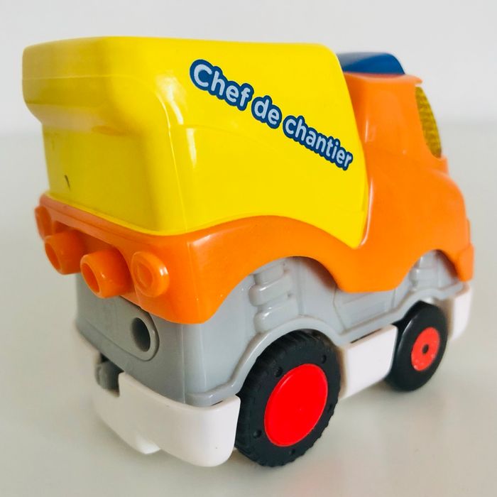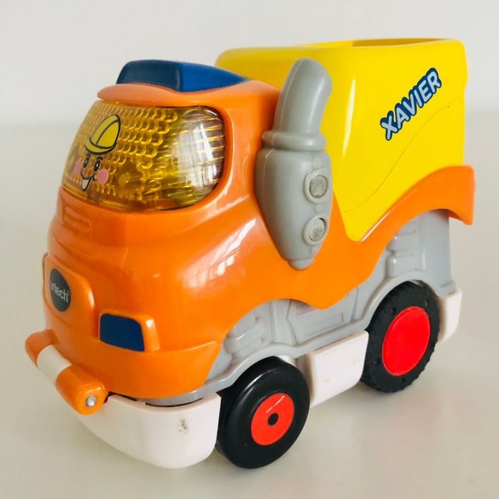 Je vends un véhicule interactif tutut bolide « Xavier Chef de Chantier ». Quelques traces d’usure. Lorsqu’on appuie sur le camion et qu’on lâche, ça le fais avancer. Musique, sons et lumière. Piles non fournies.