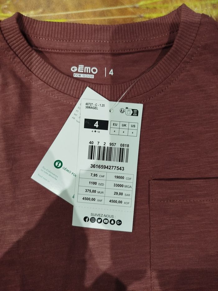 Tee shirt 4 ans Gémo neuf