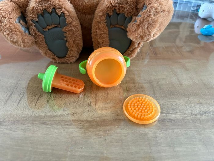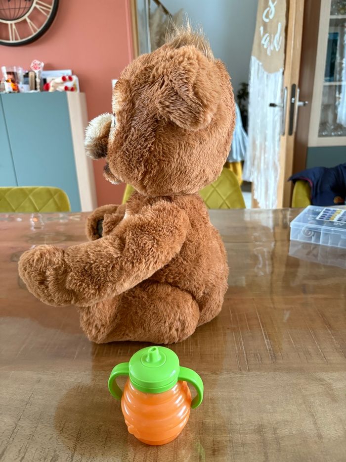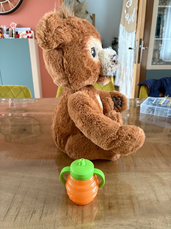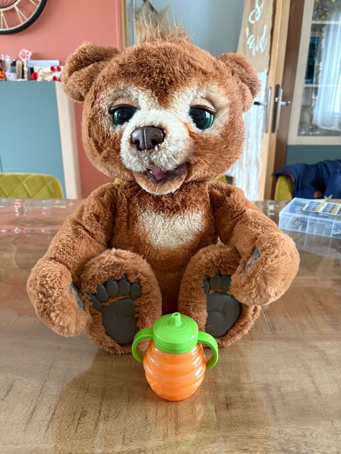 Bonjour, je vends cet ours Cubby, casiment jamais servis donc en excellent état. Il fonctionne parfaitement, tous les accessoires y sont. Il a 2 mode : 1 mode interaction et 1 mode nuit.