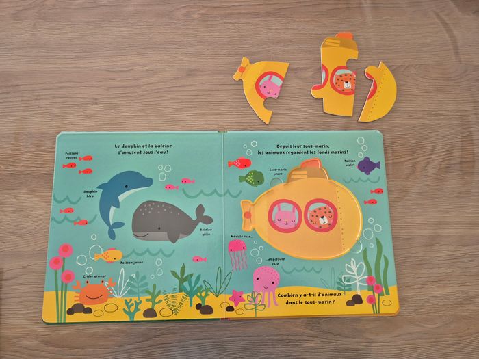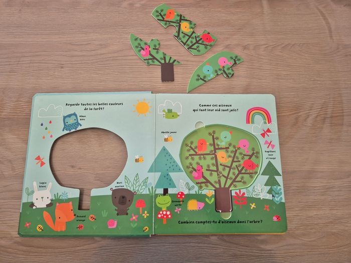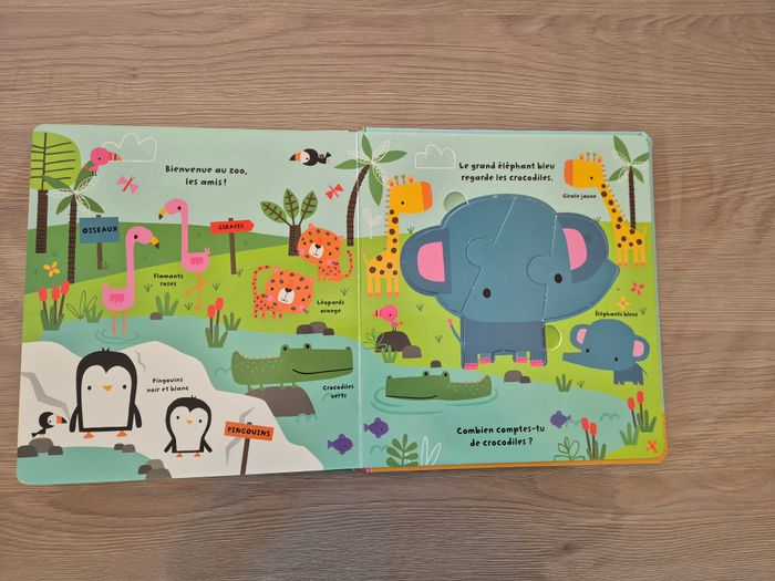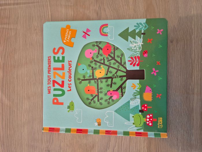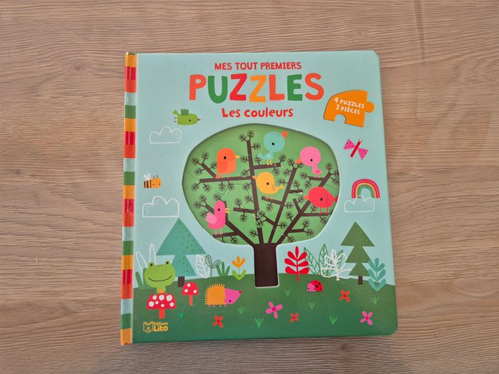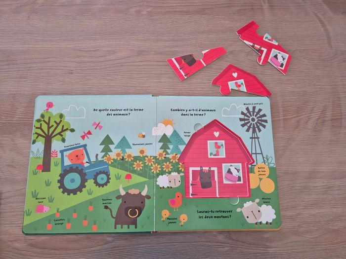 Un livre avec de belles illustrations colorées et des pièces de puzzle adaptées aux petites mains.