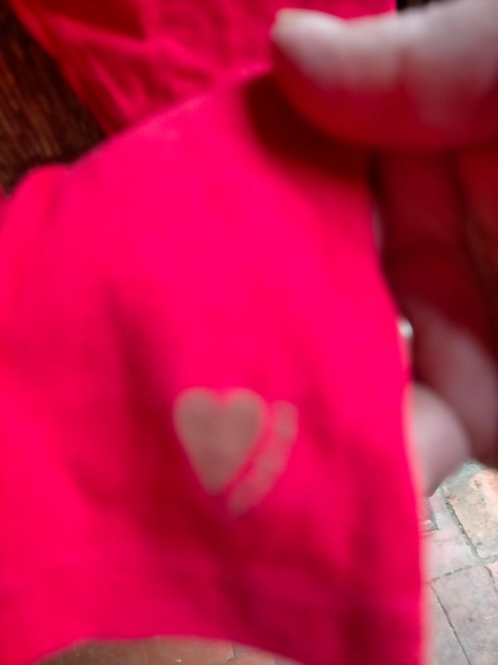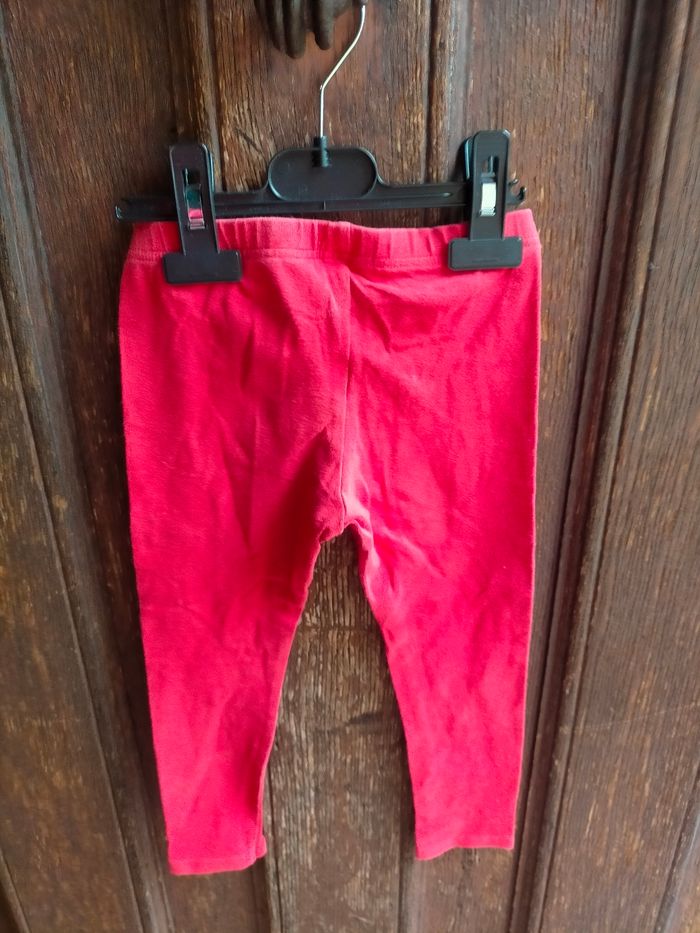 TBE très joli legging en jersey de coton rouge avec petit cœur doré signé Catimini à la base d'une jambe