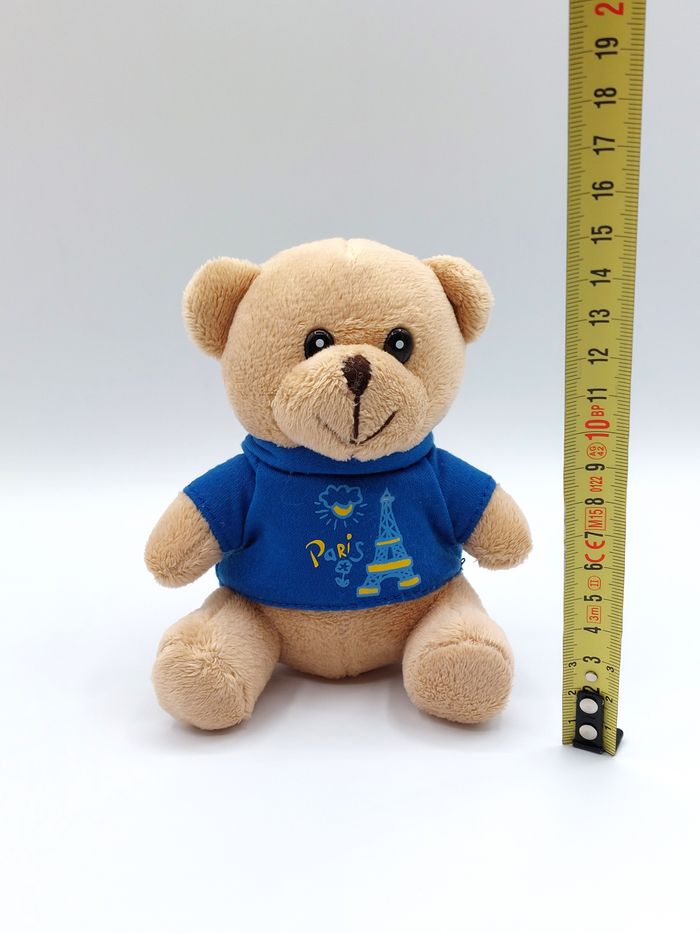 Mini peluche ours ourson beige CTD Paris tee-shirt bleu tour Eiffel doudou 13 cm - photo numéro 1