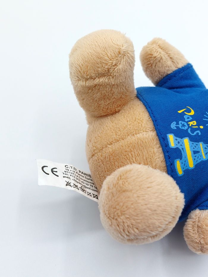 Mini peluche ours ourson beige CTD Paris tee-shirt bleu tour Eiffel doudou 13 cm - photo numéro 6