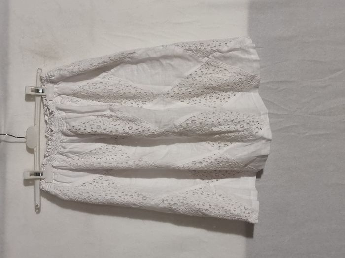 Jupe midi en lin femme Freda blanche taille XXL. Avec motif dentelle et élastique à la ceinture. En très bon état. Envoi rapide et soigné. Négociable.
