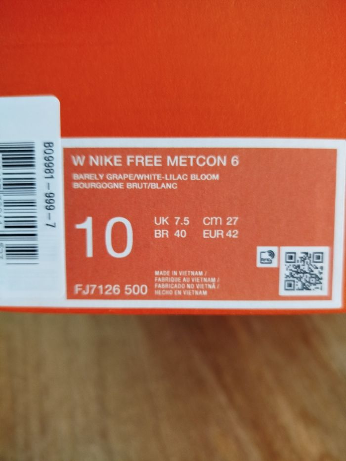 Je vends cette paire de baskets Nike. - Type de produit : Baskets - Univers : femme - Marque : Nike - Modèle : Metcon 6 - Pointure : 42 - Couleur : Lila - Etat : Neuf - Boite sans couvercle N'hésitez pas à me contacter pour plus d'informations ou de photos.