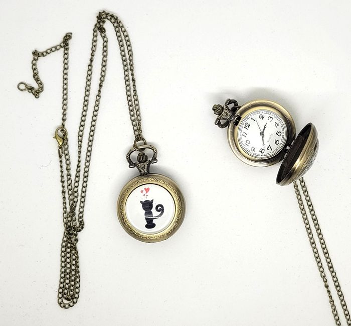 Bijoux création montre le chat amoureux style vintage gousset