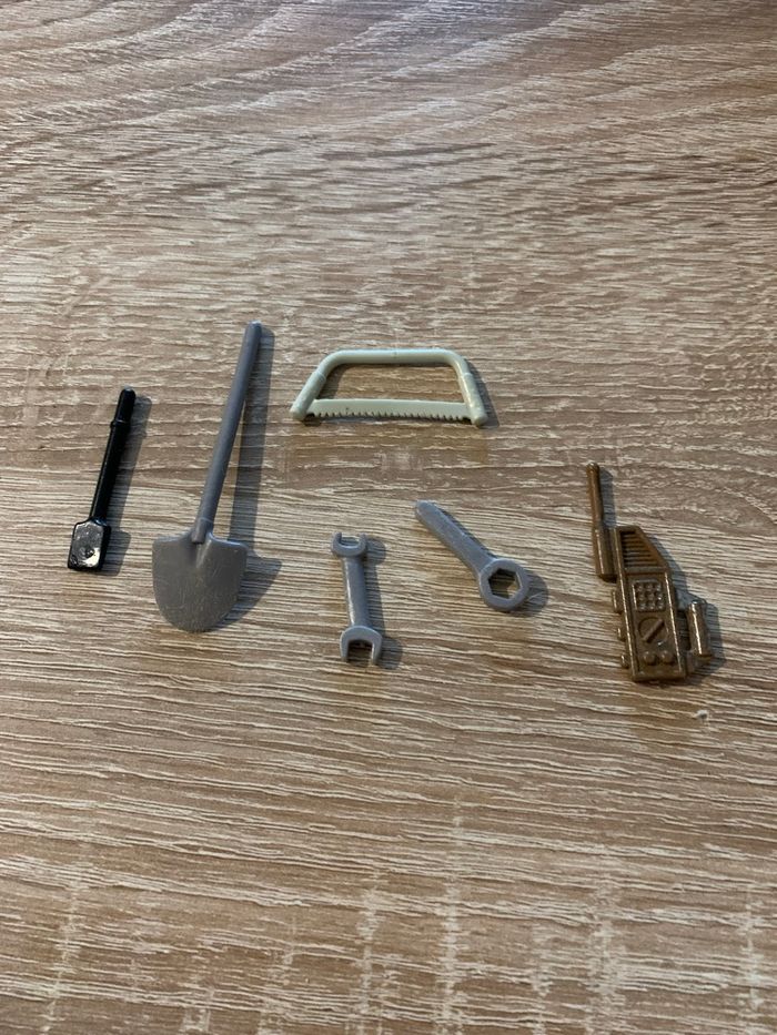 4 Playmobils dont 1 sans cheveux +quelques accessoires de chantier ( certains sont abimés, voir photo) D’autres Playmobil dans mon dressing Envoi rapide et soigné sous protection