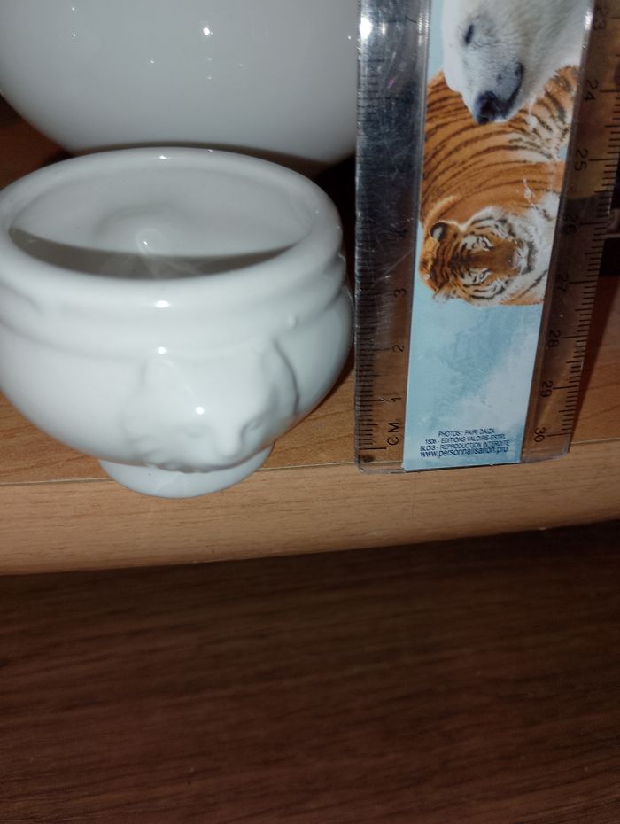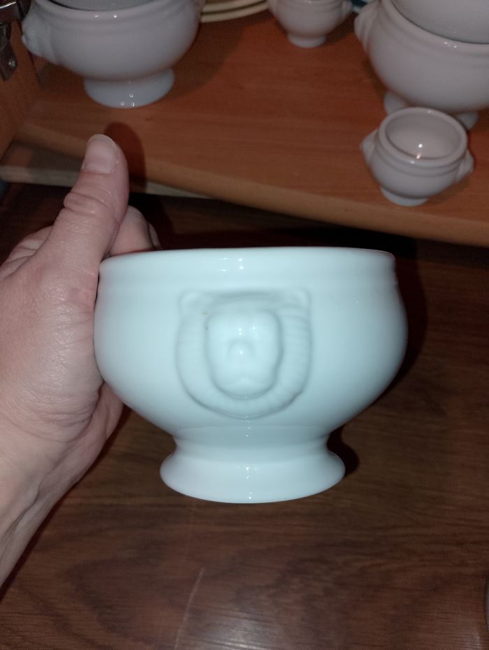Bol lion grand format ou mini format 15€ pièce les grands 10€ pièce les petits 6 de dispo en grand format, porcelaine Hauteur 8,5 cm, diamètre intérieur 10cm environ 5 de dispo en mini format pour sauce où autres Hauteur 4,5cm diamètre 4,5 cm environ