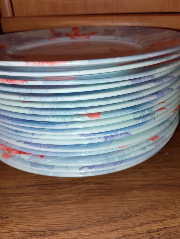 * 18 assiettes à dessert bleu motif fleurs arcopal France