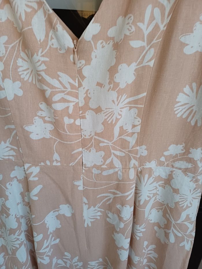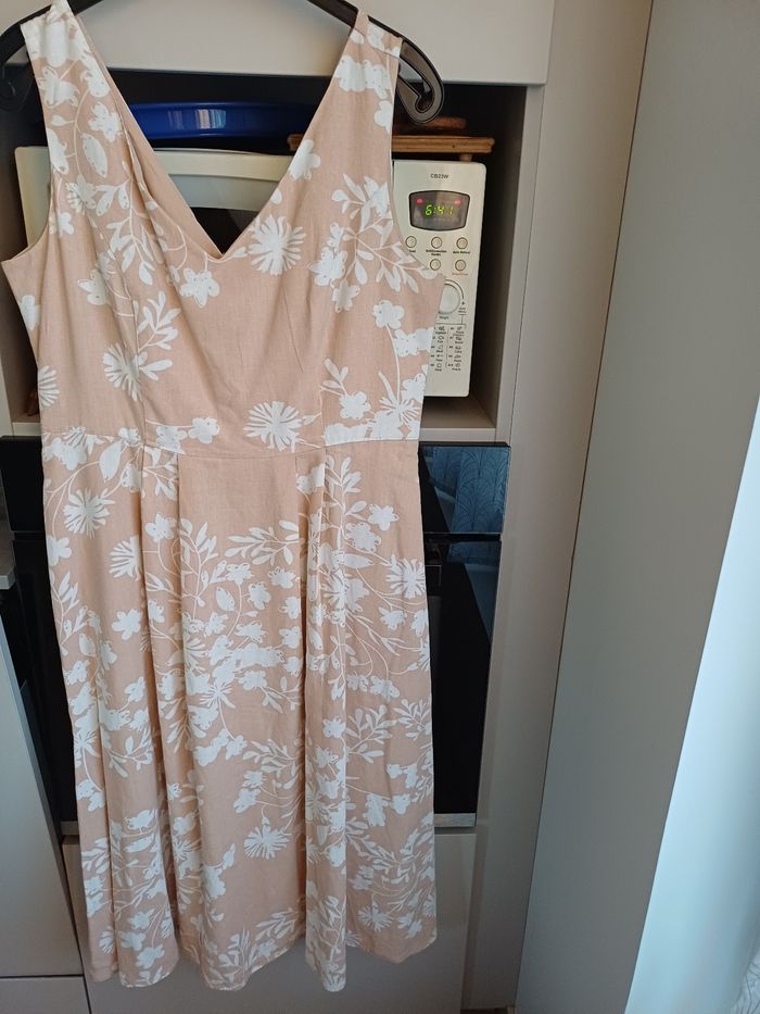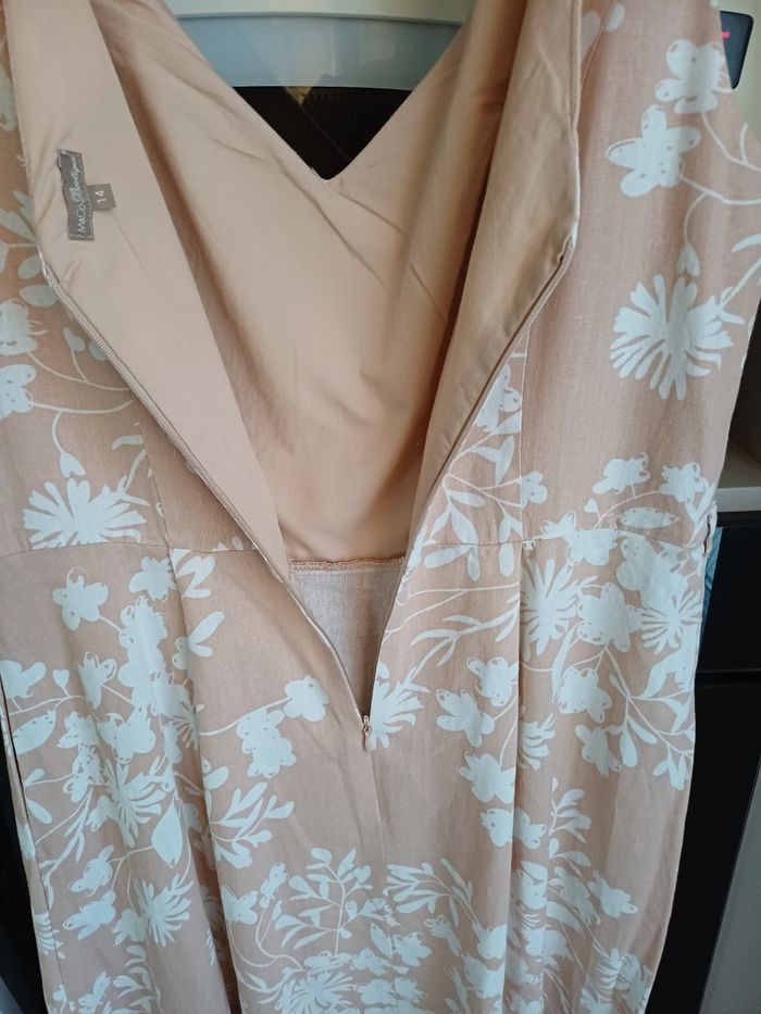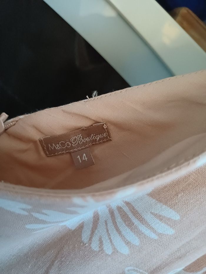 Tres jolie robe a bretelles avec sa ceinture. En tres bon etat elle s attache dans le dos avec une fermeture. Voir la photo ci jointe. La marque est M&CO BOUTIQUE.