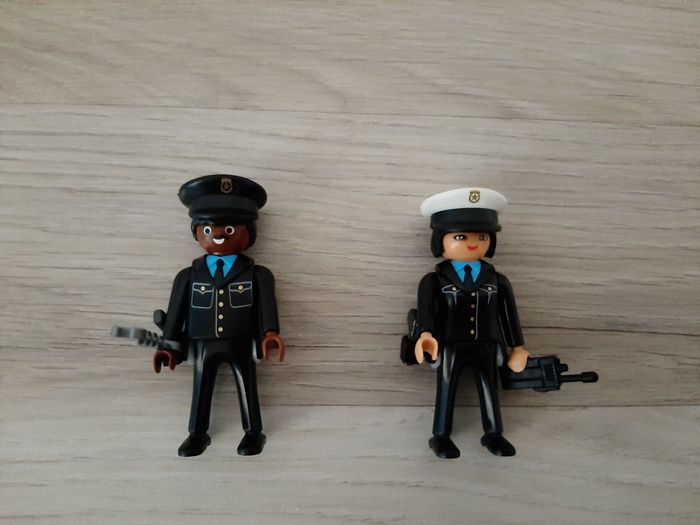 #Playmobil_Nathg2210 LOT DE 2 FIGURINES POLICE "PLAYMOBIL" - NEUVE - 2017 - n°45 Lot de 2 Figurines policiers avec tous leurs accessoires - COMPLET. Article neuf - Servi de décoration - Nettoyé et désinfecté pour la vente - Sans d'emballage d'origine - Collection Quick 2017. Possibilité d'envoyer d'autres photos sur simple demande. Maison non-fumeur - Sans animaux. Réduction lot activée. Allez voir mes autres ventes, je vide les placards. Beaucoup de vêtements de marque et beaucoup de jouets. Remise en mains propres ou possibilité d'envoi au tarif en vigueur à votre charge. Retour Refusé. Pour tout renseignement, n'hésitez pas à me contacter, je répondrai volontiers à vos questions. Réponse Assurée. Pour Consulter mes autres annonces tapez Nathg2210.
