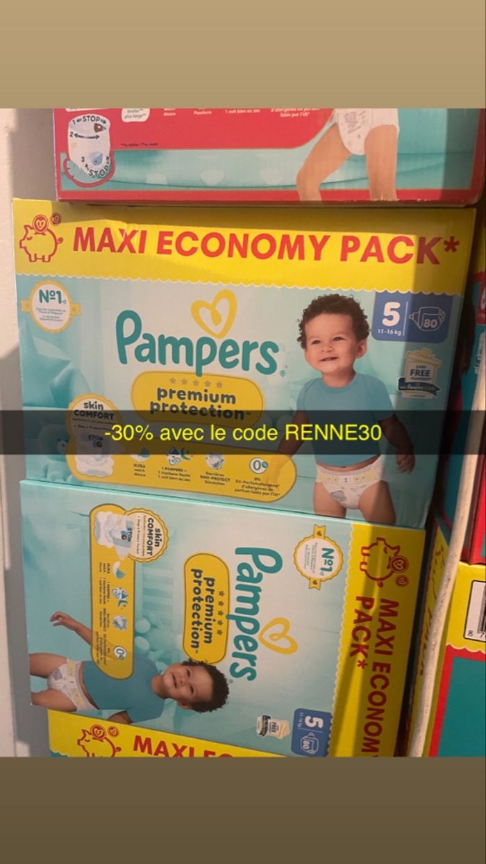 Le lot de deux cartons de couches Pampers premium protection taille 5