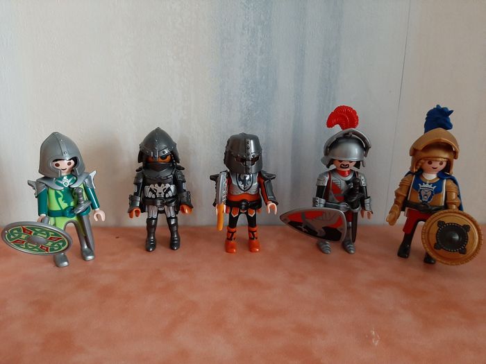 #Playmobil_Nathg2210 LOT DE 5 FIGURINES CHEVALIERS "PLAYMOBIL" - NEUVE - 2017 - n°50 Lot de 5 figurines chevaliers avec leurs accessoires - COMPLET. Article neuf - Servi en décoration - Nettoyé et désinfecté pour la vente - Sans emballage d'origine - Collection Quick 2017. Possibilité d'envoyer d'autres photos sur simple demande. Maison non-fumeur - Sans animaux. Réduction lot activée. Allez voir mes autres ventes, je vide les placards. Beaucoup de vêtements de marque et beaucoup de jouets. Remise en mains propres ou possibilité d'envoi au tarif en vigueur à votre charge. Retour Refusé. Pour tout renseignement, n'hésitez pas à me contacter, je répondrai volontiers à vos questions. Réponse Assurée. Pour Consulter mes autres annonces tapez Nathg2210.