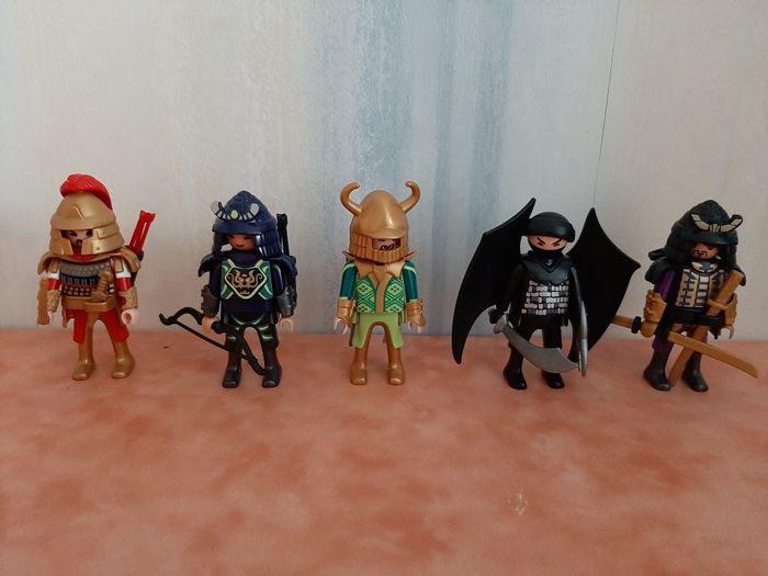 #Playmobil_Nathg2210 LOT DE 5 FIGURINES CHEVALIERS "PLAYMOBIL" - NEUVE - 2016 - n°55 Lot de 5 figurines chevaliers Samouraï et Ninja avec leurs accessoires - COMPLET. Article neuf - Servi en décoration - Nettoyé et désinfecté pour la vente - Collection Quick 2016. Possibilité d'envoyer d'autres photos sur simple demande. Maison non-fumeur - Sans animaux. Réduction lot activée. Allez voir mes autres ventes, je vide les placards. Beaucoup de vêtements de marque et beaucoup de jouets. Remise en mains propres ou possibilité d'envoi au tarif en vigueur à votre charge. Retour Refusé. Pour tout renseignement, n'hésitez pas à me contacter, je répondrai volontiers à vos questions. Réponse Assurée. Pour Consulter mes autres annonces tapez Nathg2210.